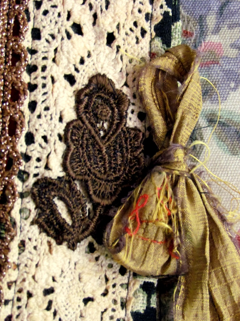 I like that sexy bit of black lace at the bottom...My mom had a tapestry purse if I recall. It was a big thing in the 50's when I was small. She used to carry it to church. But your collection is quite amazing. As well as all your other marvelous fabrics. Some day you will have to show us your stash! xox Corrine