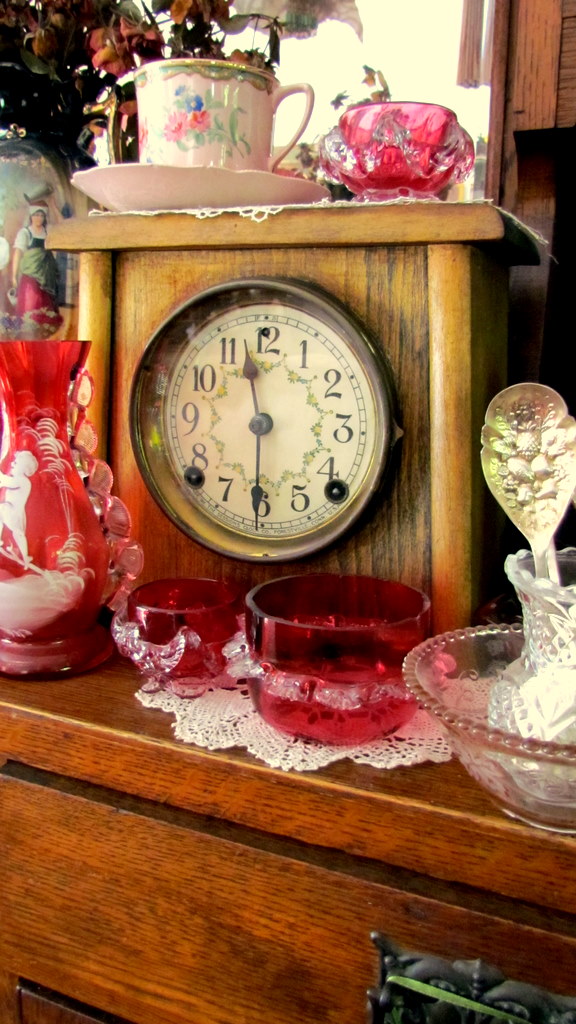 I forgot to say how much I love the photo of your beautiful vignette with the clock, pink teacup and saucer and your lovely crystal! So very Victorian and beautifully arranged! Love to you! Paula
