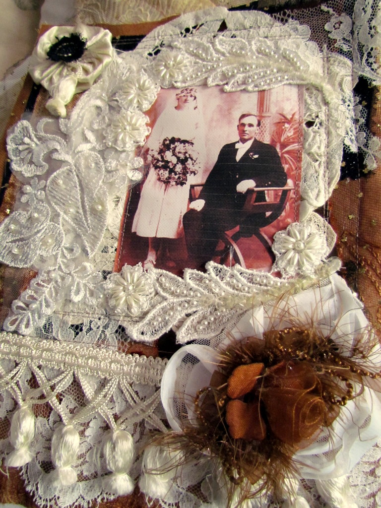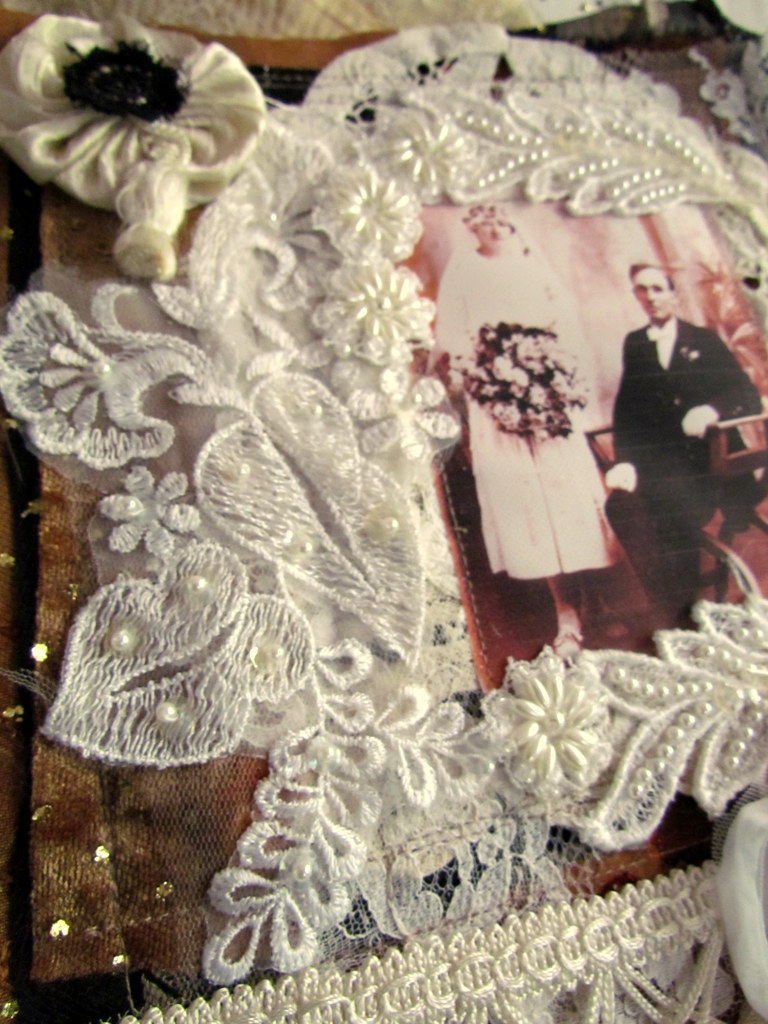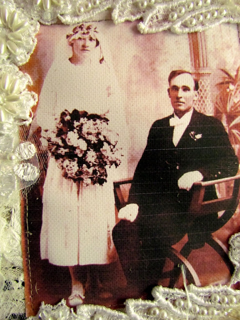 The photograph of your Grandparents is so special and reminds me of a treasured photograph of my paternal Grandparents, married at a similar time to your own. Last year I created an altered canvas for the first time with the photo and seeing this piece of art by you I am eager to once again play with the photograph (scanned, of course!)