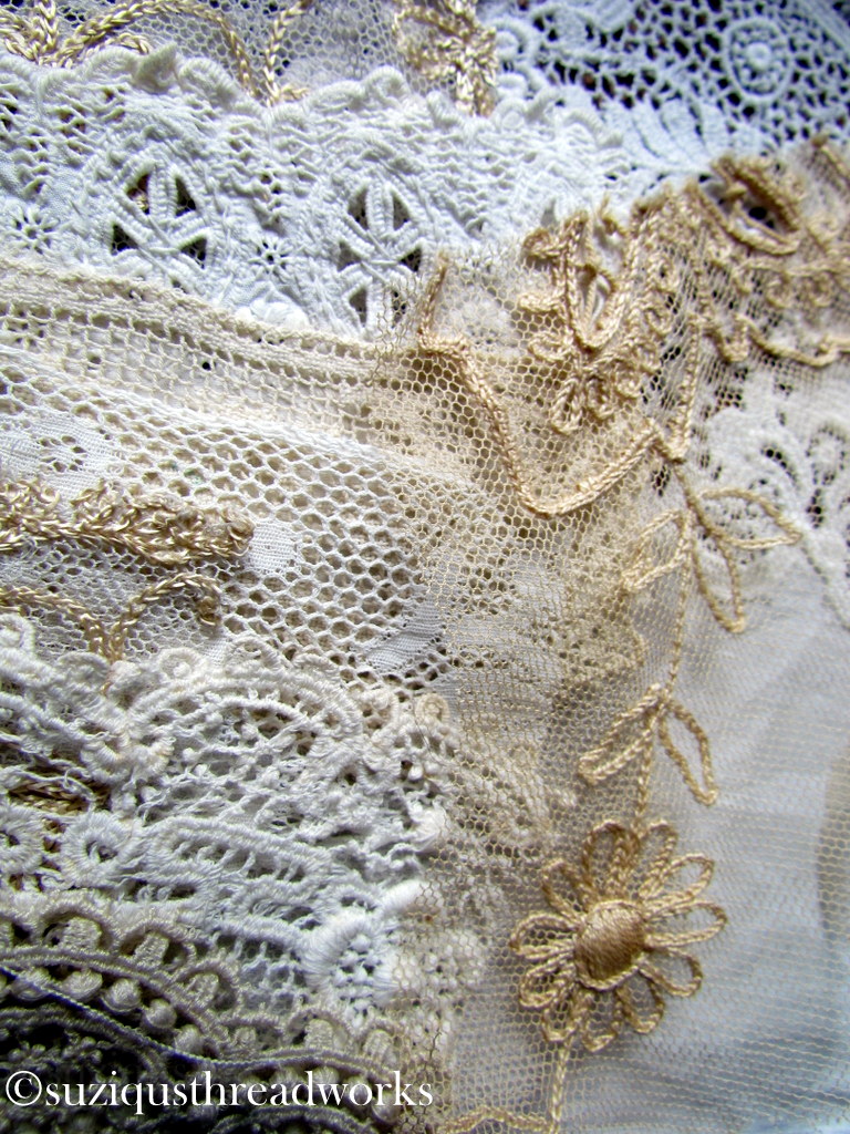 Suzy your work is so exquisite and the layers and layers of lace and crochet really gives it depth of interest. You have created heirloom treasures. Fabulous new vintage acquisitions you have. The laces are dreamy. Blissful Creating...