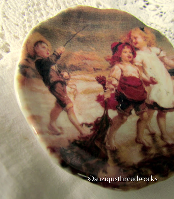 Amazing pages, love the little roses. Jealous of your lace stash and the little plate, all the way from my country, just adorable.What's the betting it was made in Staffordshire.