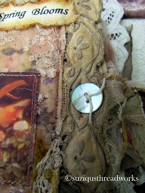 I can't even express how beautiful I think this journal is Suzy! Every time I see one of your art pieces, I think they cannot get prettier, but they do...maybe not prettier, but lovelier in a different way. Isn't that what is exciting about collaging? Every thing is a surprise of beauty. Especially yours!!! I love the images you used in this journal.