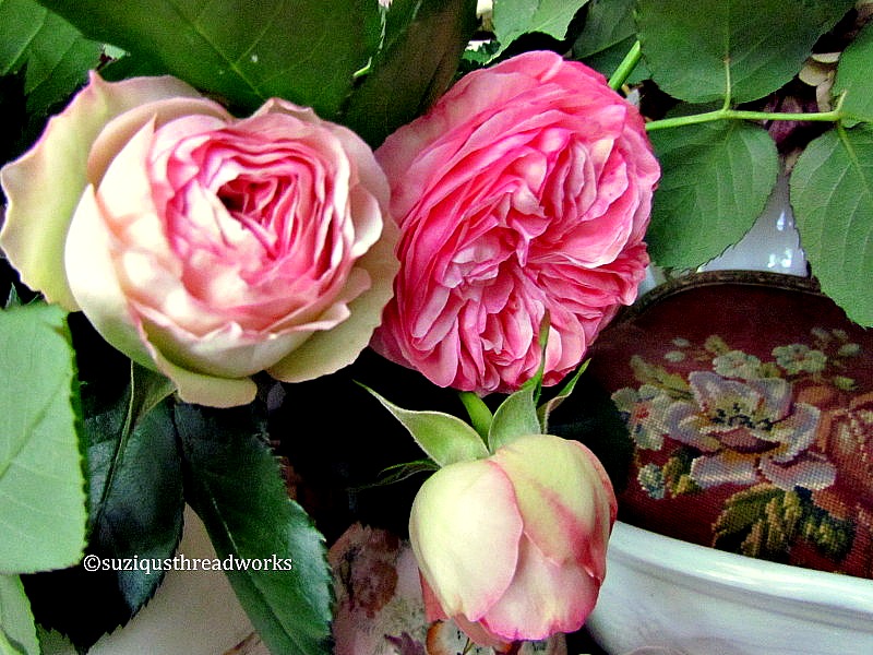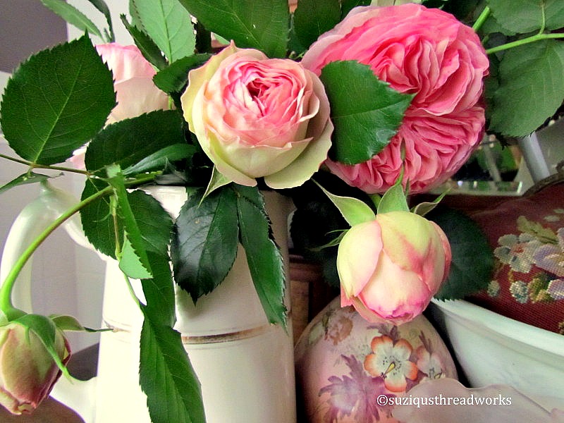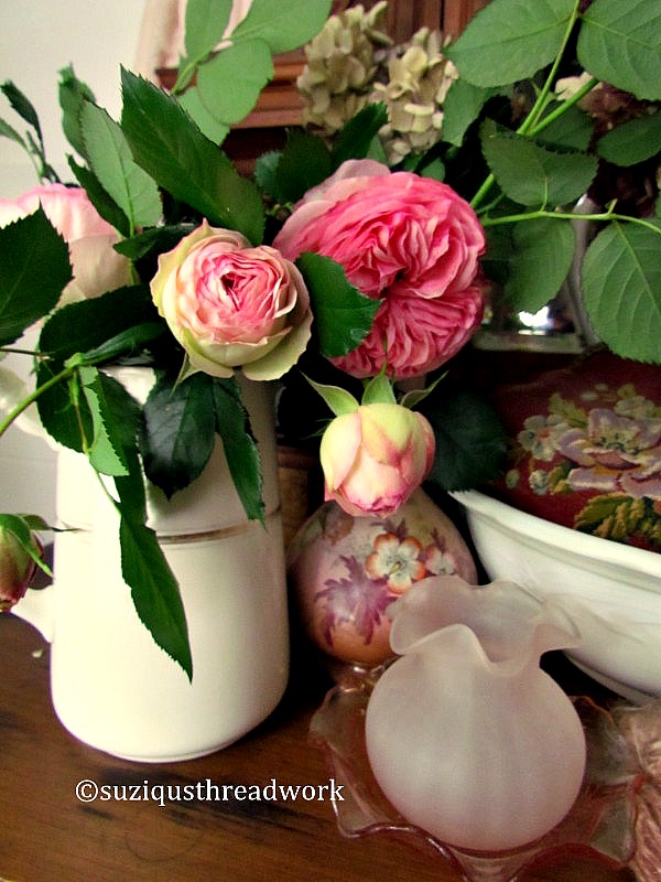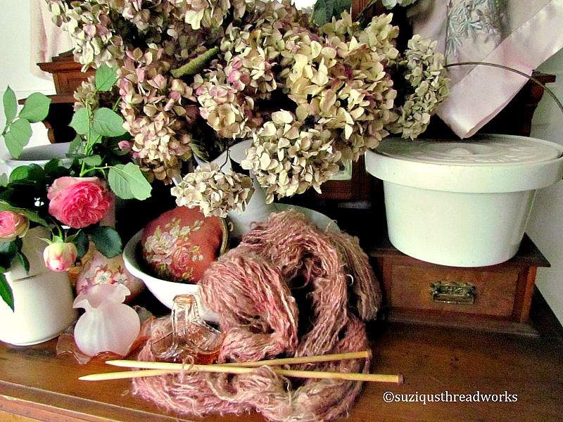 Dear, sweet Suzy, What a beautiful post my friend! You have such a beautiful heart and are always thinking of ways to bless others. You have certainly blessed me! What a wonderful project dear Vicki has going. She has a beautiful heart too! I enjoyed reading about it and seeing all of your gorgeous photos! Your angora goats are so sweet! I especially love the one lying on the iron bench! The mohair you spun is so pretty and I love the shade of pink you dyed it, and with avocado skins! You have amazing talent dear heart! Oh, I love the photo in your bathroom. You create the most beautiful vignettes! I love all of your pretty pink things. The pink tapestry petit point purse from the 1920's is exquisite! I love your gorgeous roses! I know you are so happy to have spring arrive and the return of your beloved roses! Thank you for sharing this and thank you for visiting me and for your sweet and loving words! I hope you have a beautiful week filled with blooming roses and happy hours! Love and hugs to you dear friend! Paula