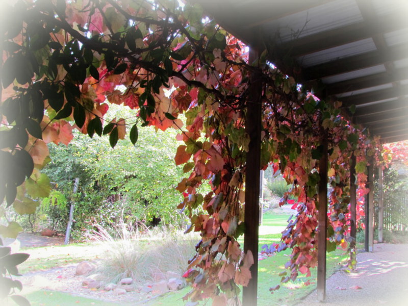 I can never get enough of your amazing garden Suzy!!!!! That grapevine is truly divine in it's autumn glory. The photos in your garden are such that I almost can put myself right into them. SO beautiful!