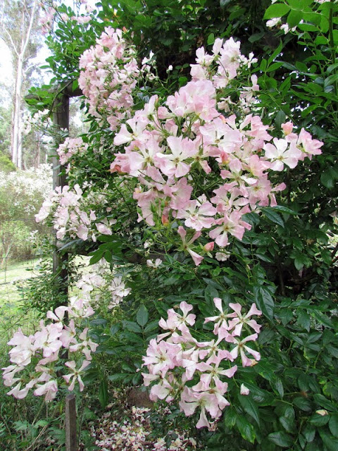 in a jungle of climbing roses "Lorraine Lee"