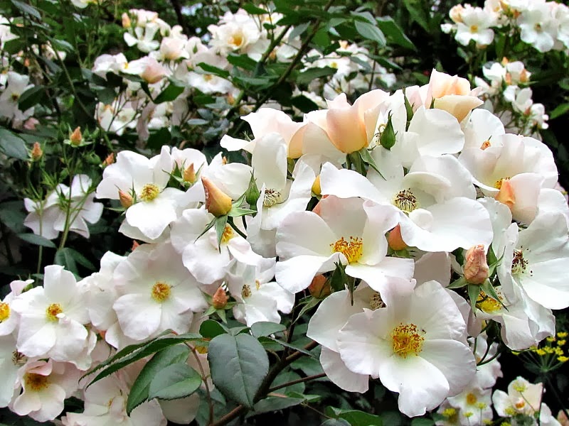 amazing view of bush and climbing roses