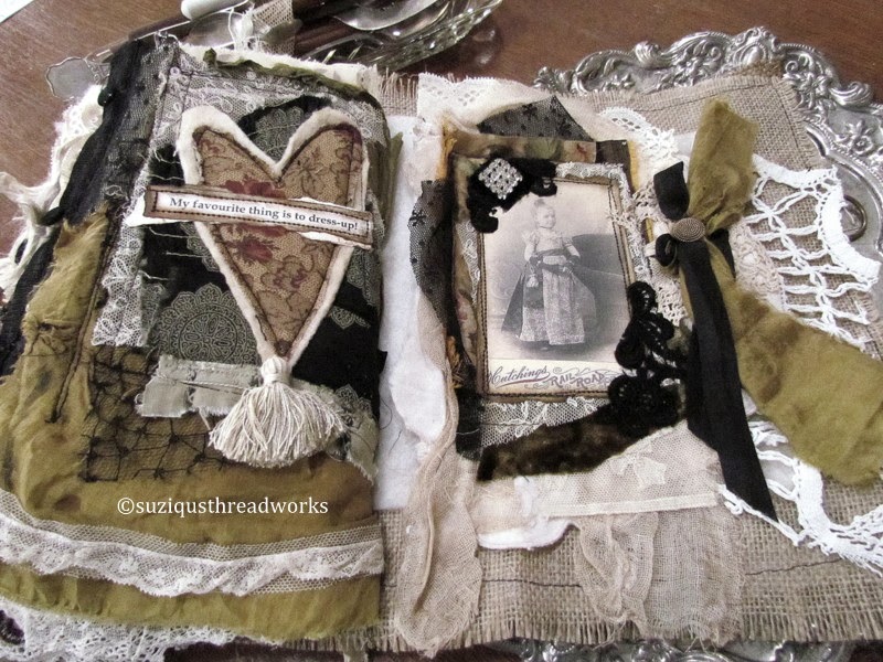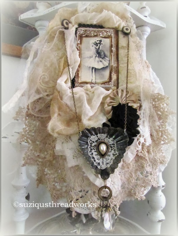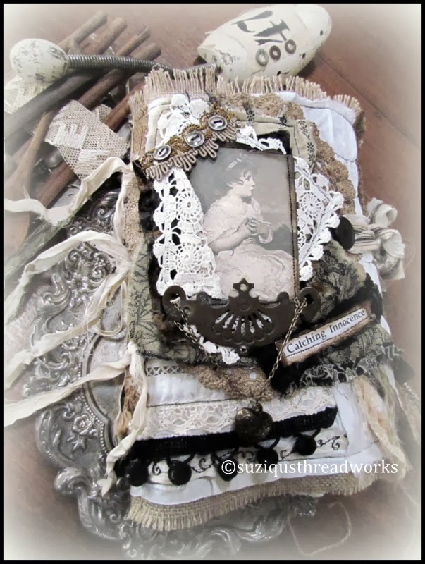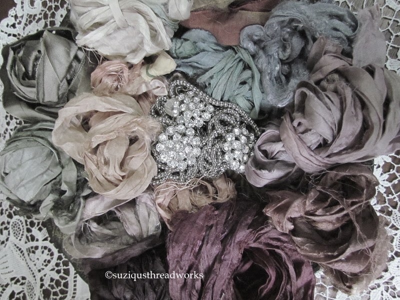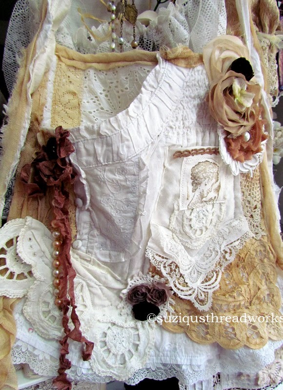 embellished with seam binding, silk, beads and