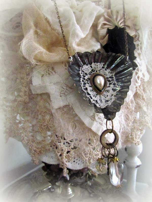 It is a vintage lace and fabric brooch