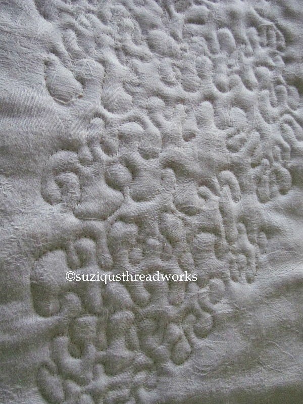 linen thread work of the cloth underneath.