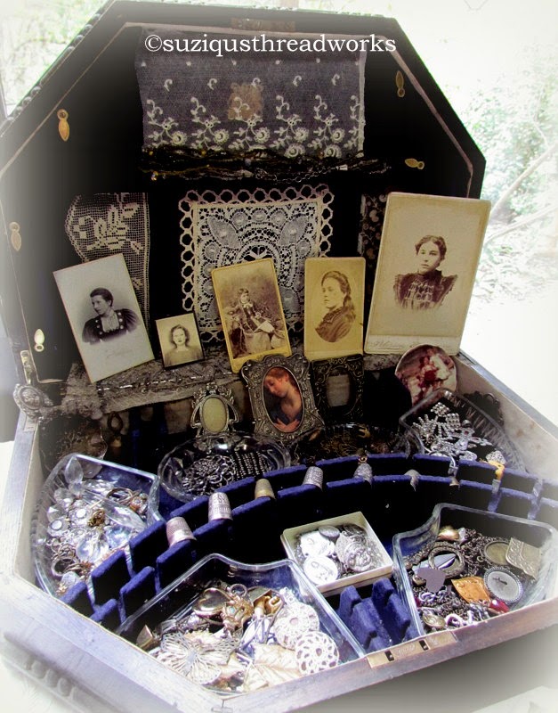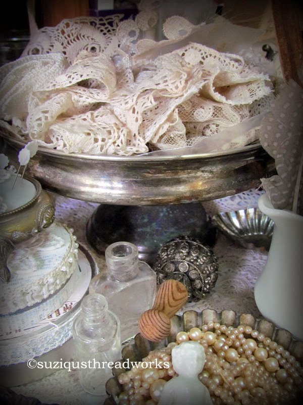 ReplyDeleteAbsolutely wonderful pics Suzy...beautiful laces, fabrics and bric a brac...I am still sending prayers of healing up for you and hope you are fully recovered soon...you are sorely missed to be sure...hope you are having a blessed and restful day...hugs from across the pond...