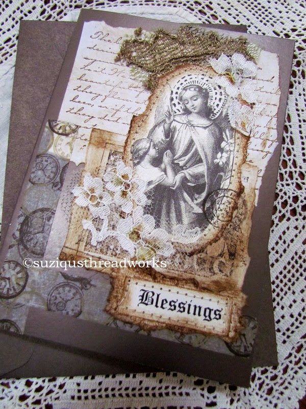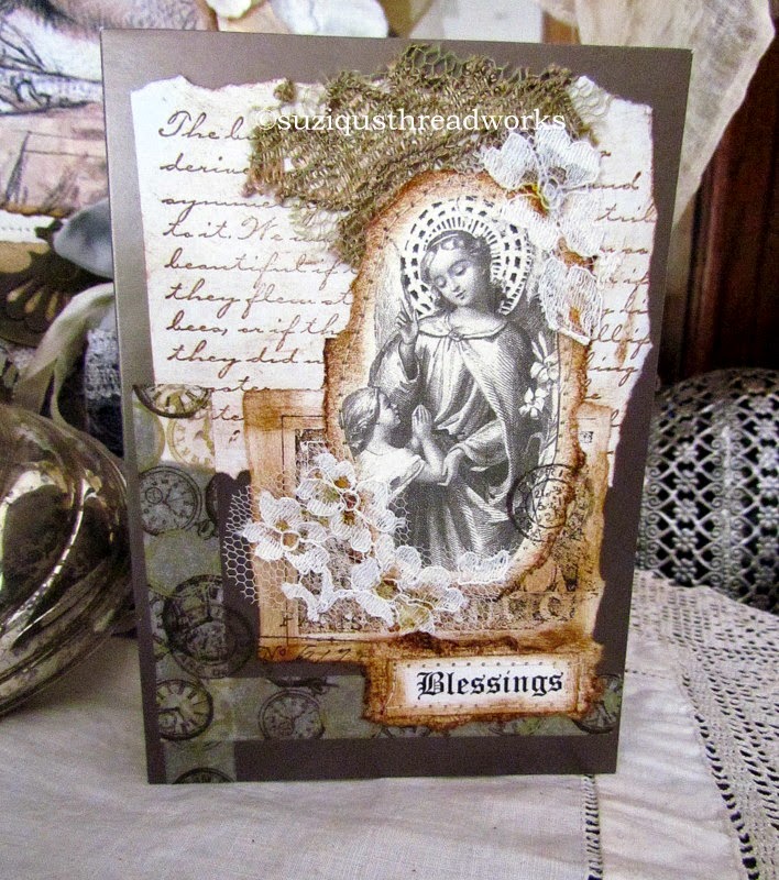 ReplyDeleteYour creations are beautiful, love the layers of exquisite laces, and the addition of images and embellishments. You have a unique style Suzy. so glad you are able to create again. Those cards are beautiful, would make gorgeous pictures if framed. Hope you continue to improve, as you say, you have nothing if you do not have your health. with love Jayne9808