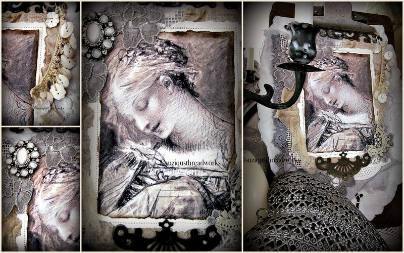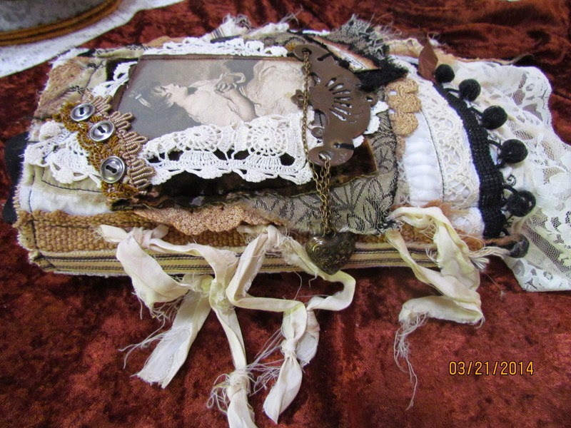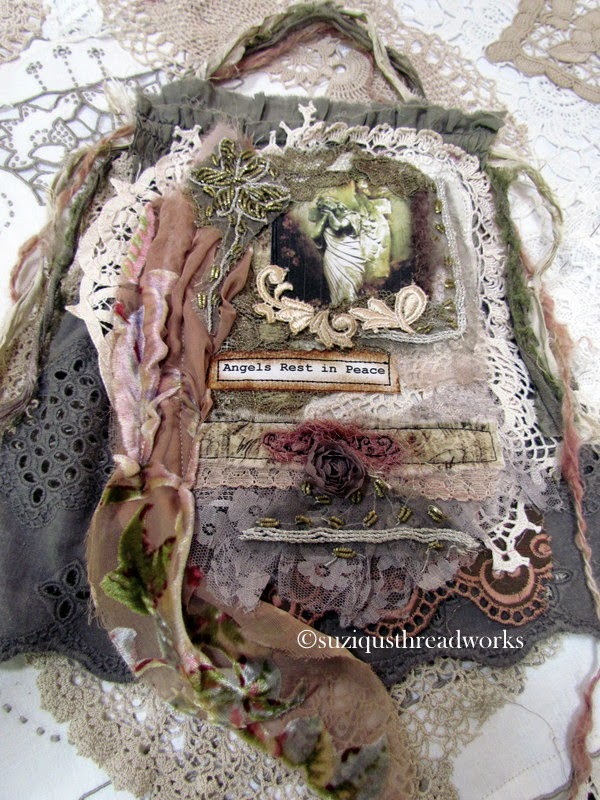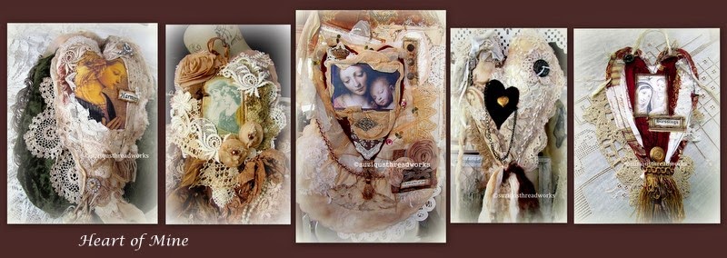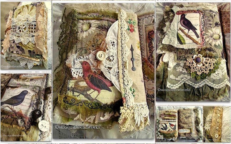 ReplyDeleteWhat a picturetrail of stunning art pieces from your creative heart and hands . I so admire your ability to turn every single little piece of fabric and lace, into some amazing stories ,which I soo love" reading" . Your journals are stunning pieces, and so are your collages, cards ,and all things coming from your hands.