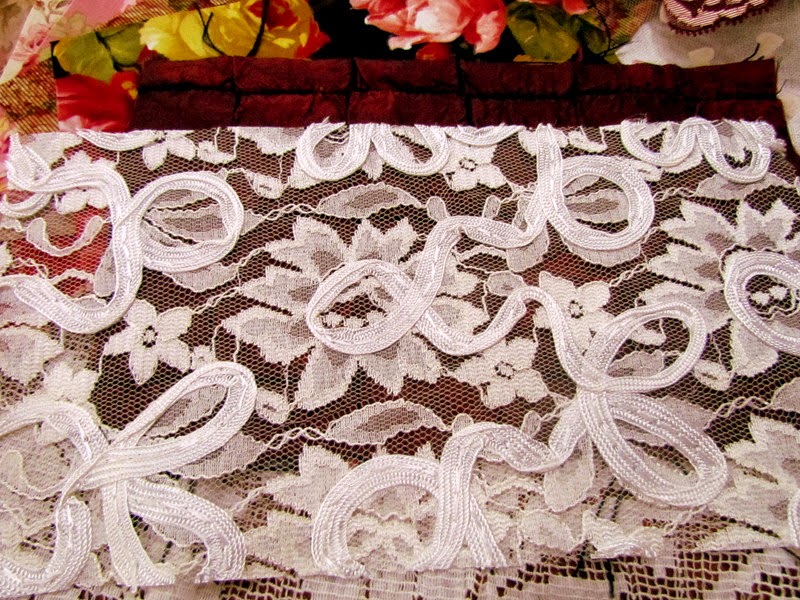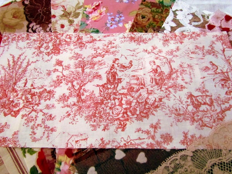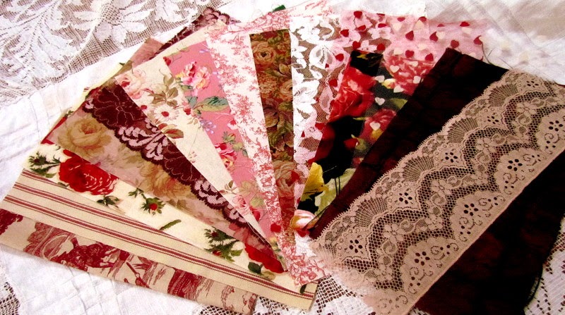 Valentine rose, toile, ticking and fabric lace