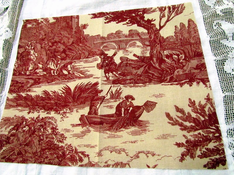 but I do still have some larger amounts of that toile (strong red and white) and ticking available in different colors.