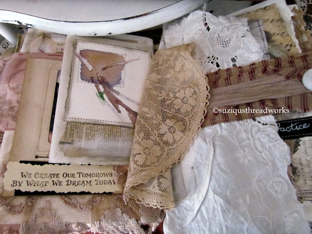 fibres, vintage jewellery, rusty items and paper ephemera