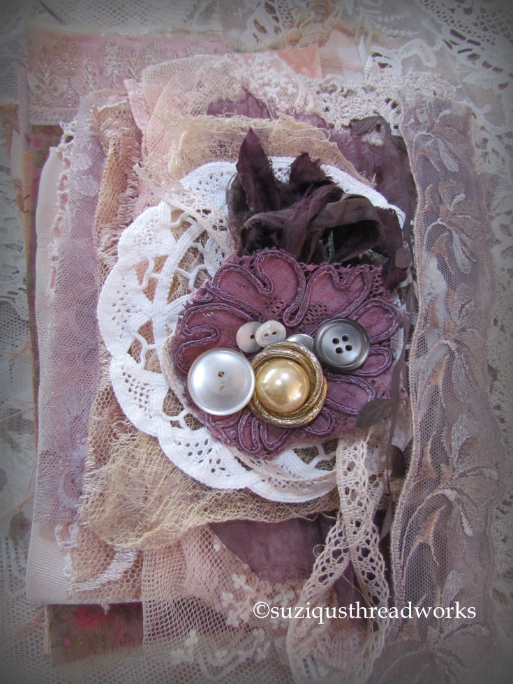 30. I admire your absolutely stunning art work and am so happy that you have offered an on-line class to teach your Fabric and Lace Journal/Book. I have purchased your class and will be creating my book entitled "She Longed to Dance" with a pink ballet theme. Your fabric, lace and embellishment kit would be a God send to receive. Your taste in fabrics and lace is humbling. I am counting the days until your class.