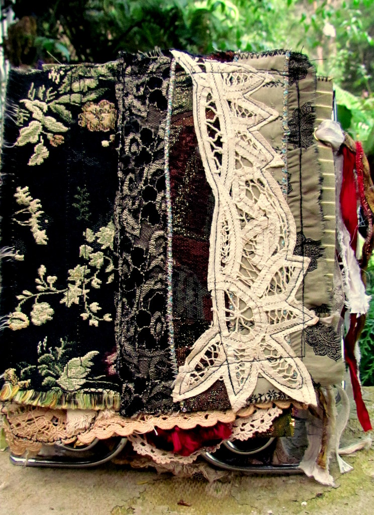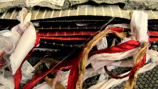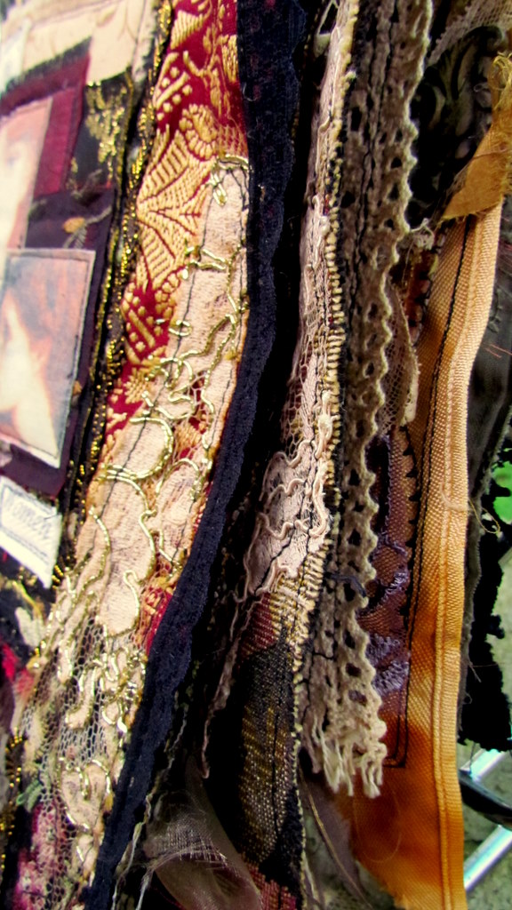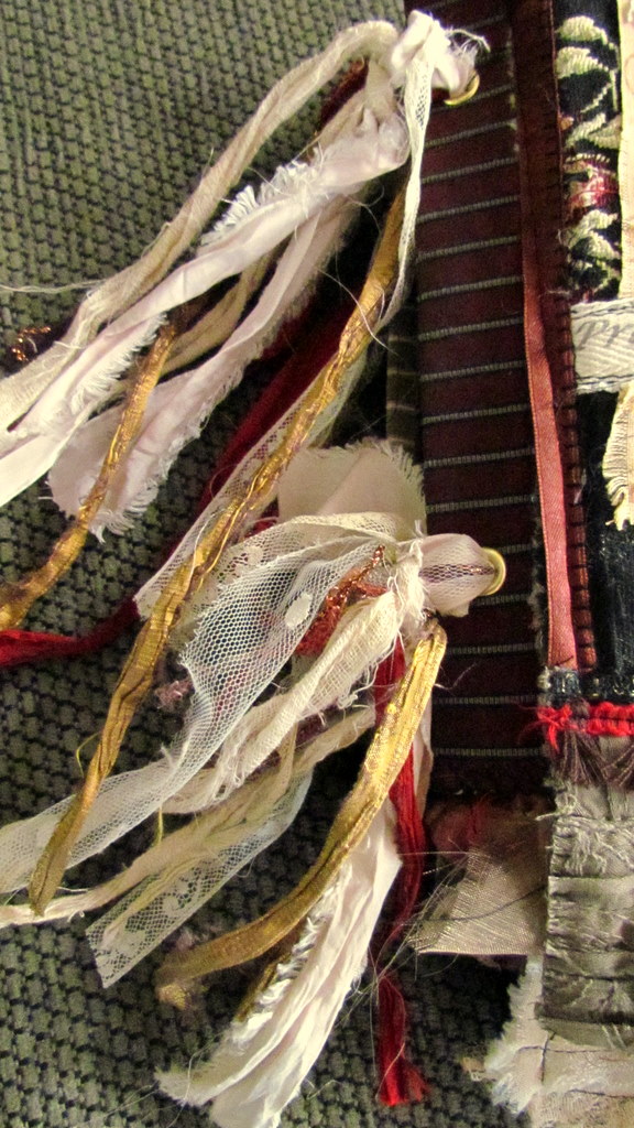 The tassels are made from sari silk, scrim, lace and thread.