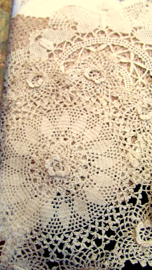 swede pocket as well as a number of vintage doilies