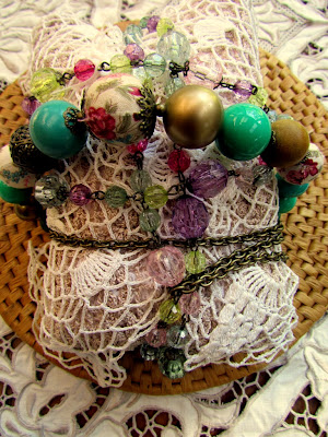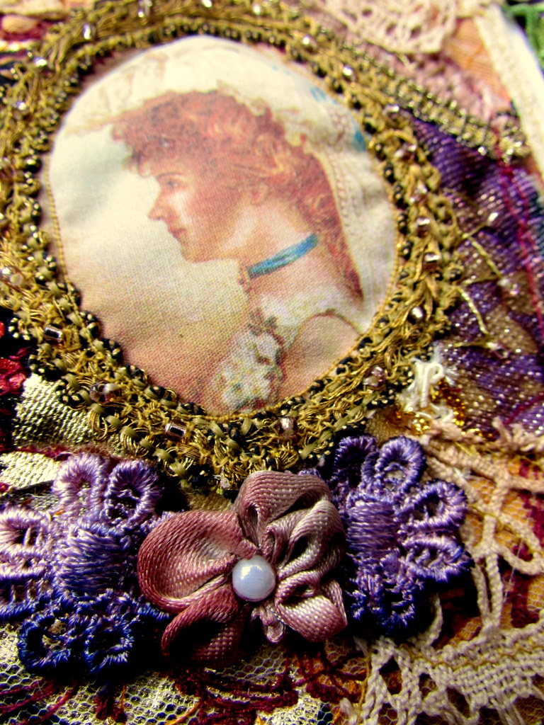 Such beautiful crazy patchworked collage with lace and beads - I just love this!