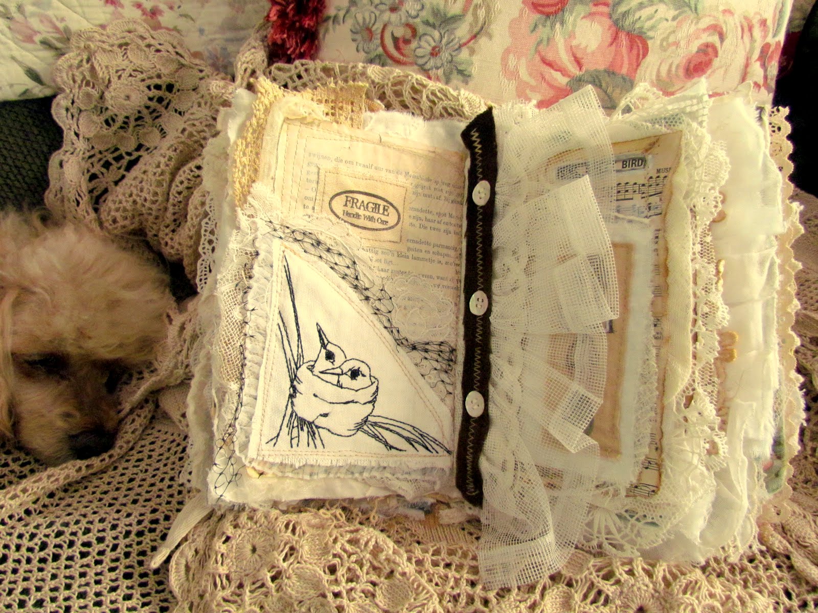 of a fabric and lace journal