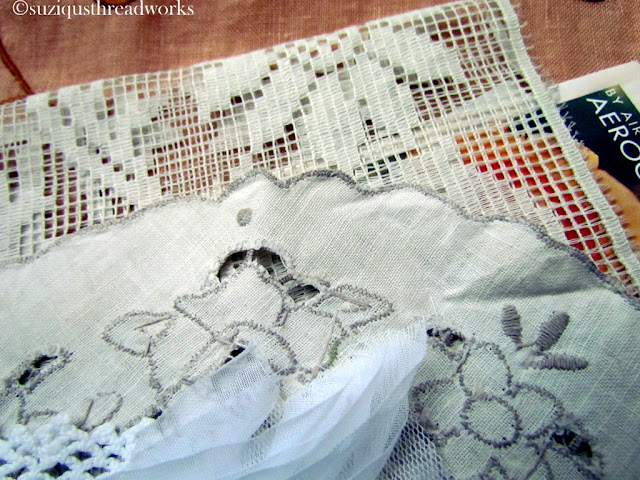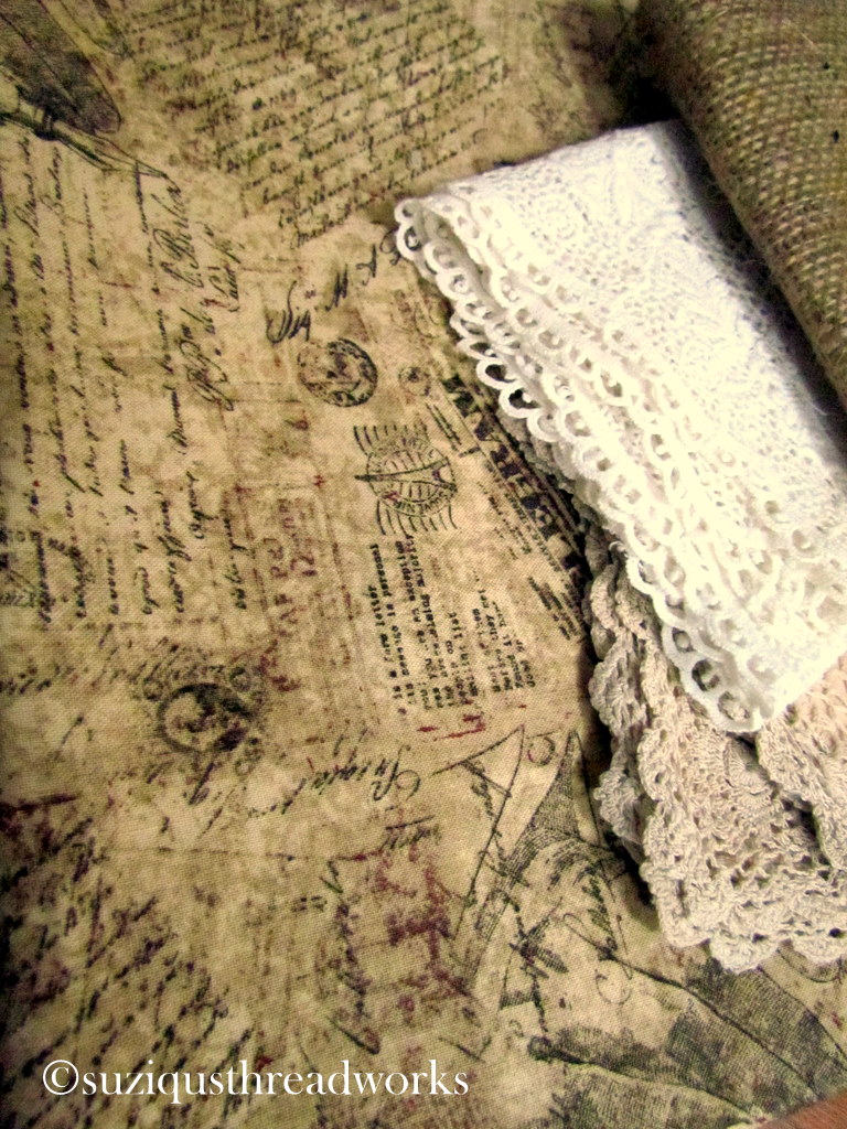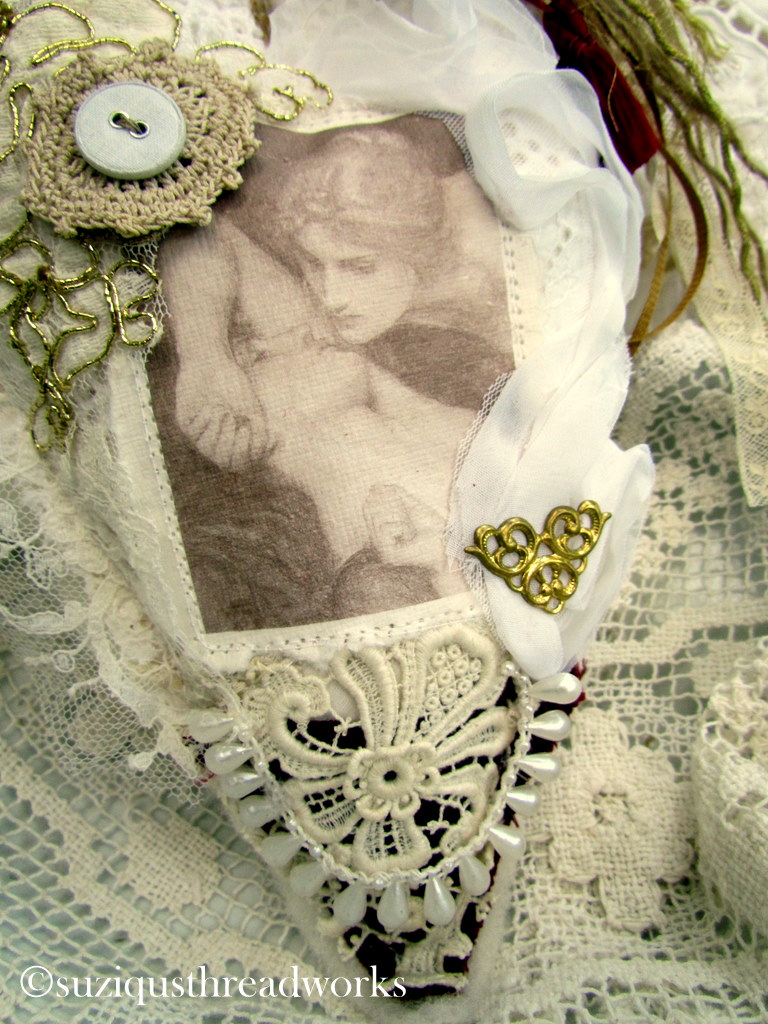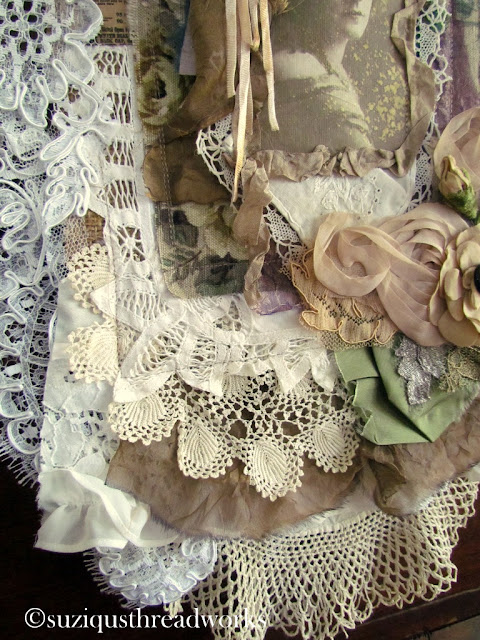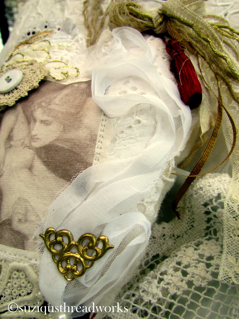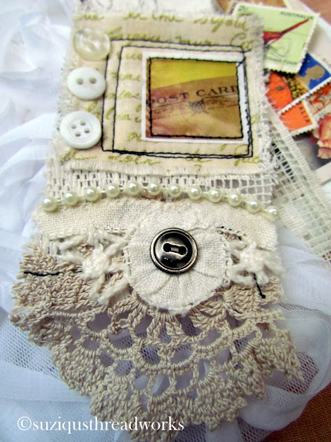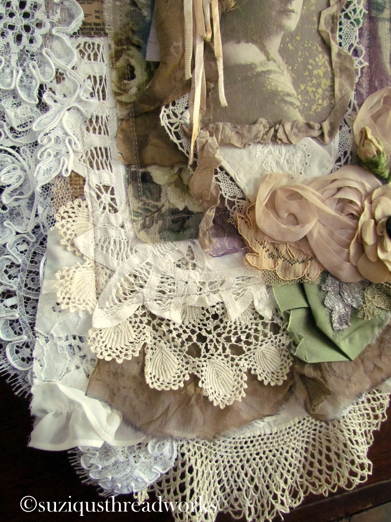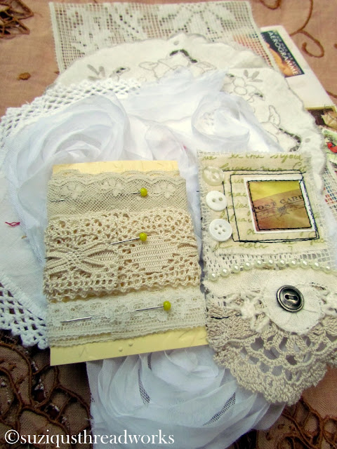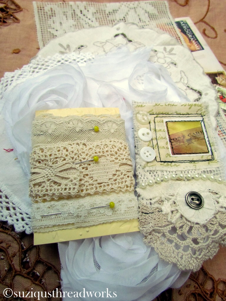 an ATC, vintage laces and doilies