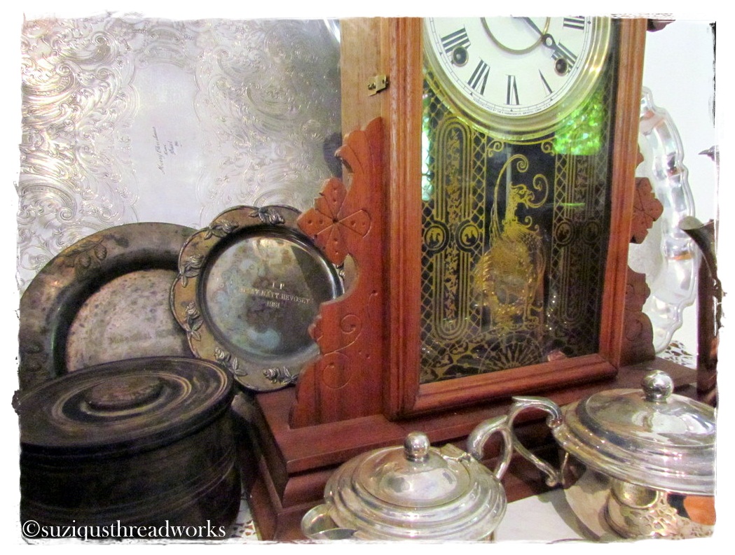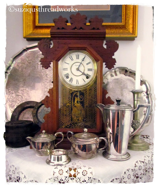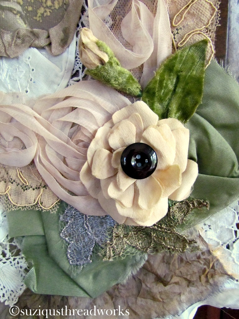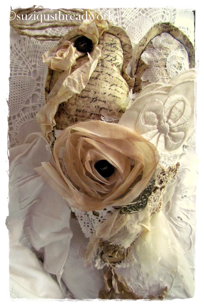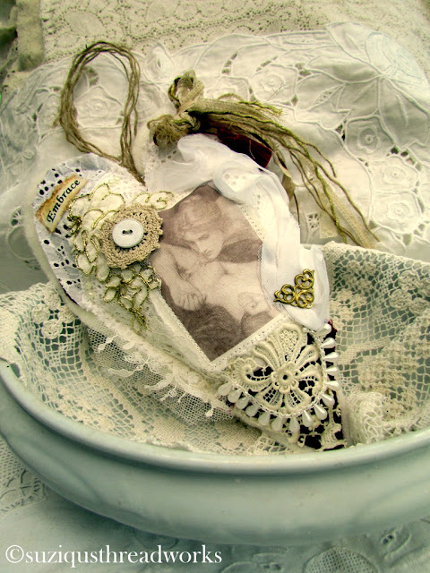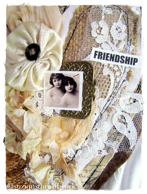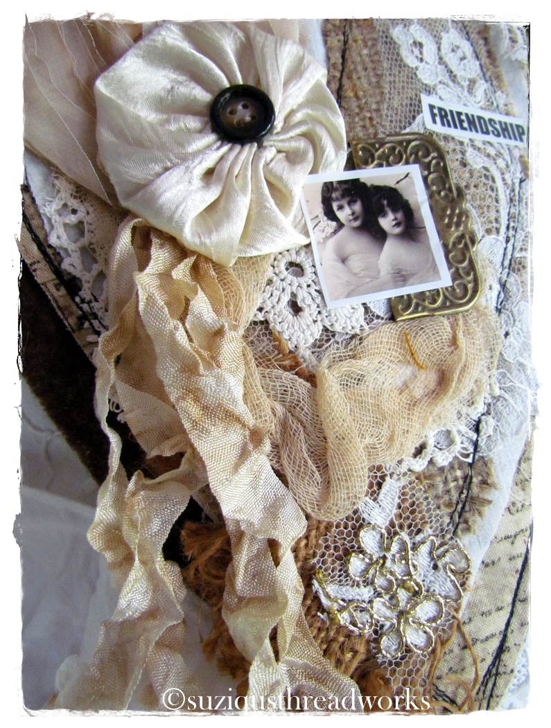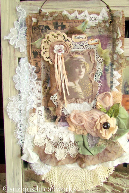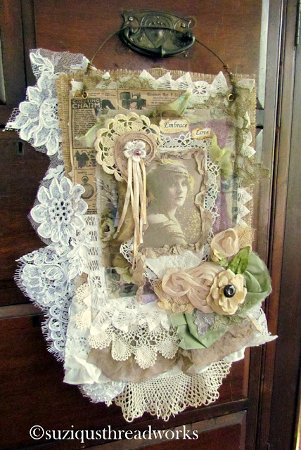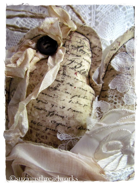 an ATC, vintage laces and doilies