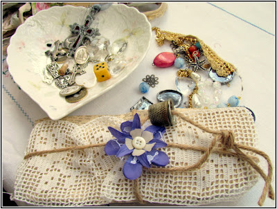 came this box, wrapped so beautifully in a hand knitted doiley