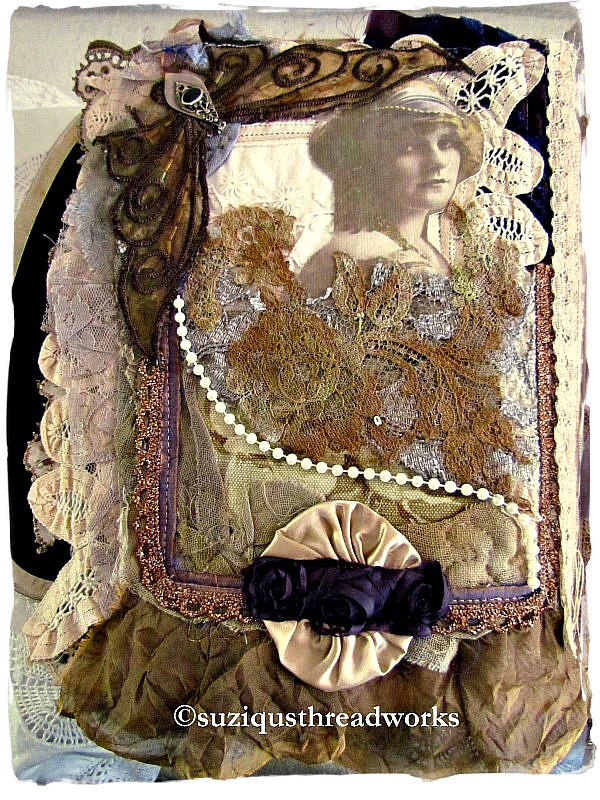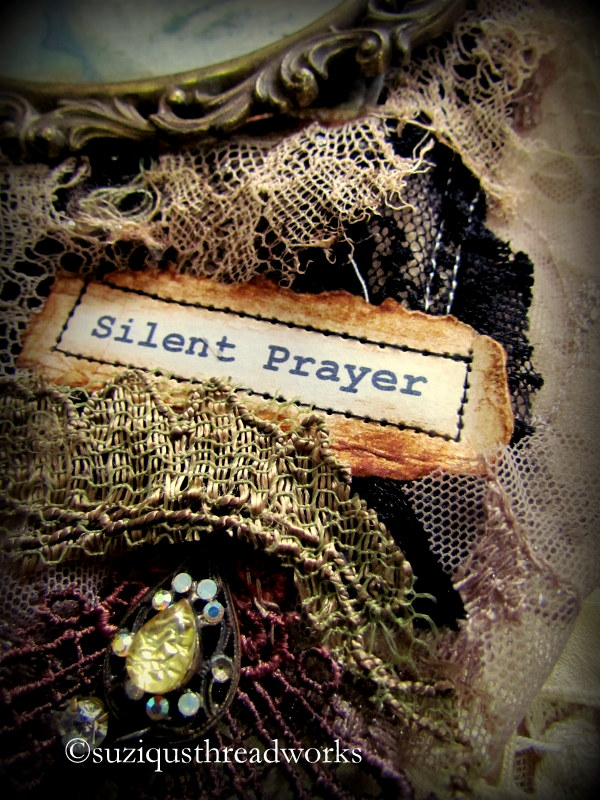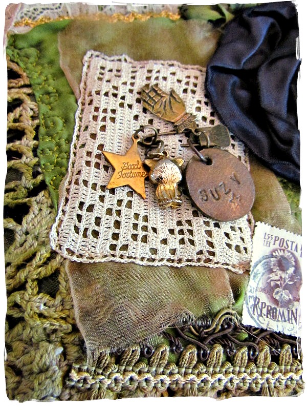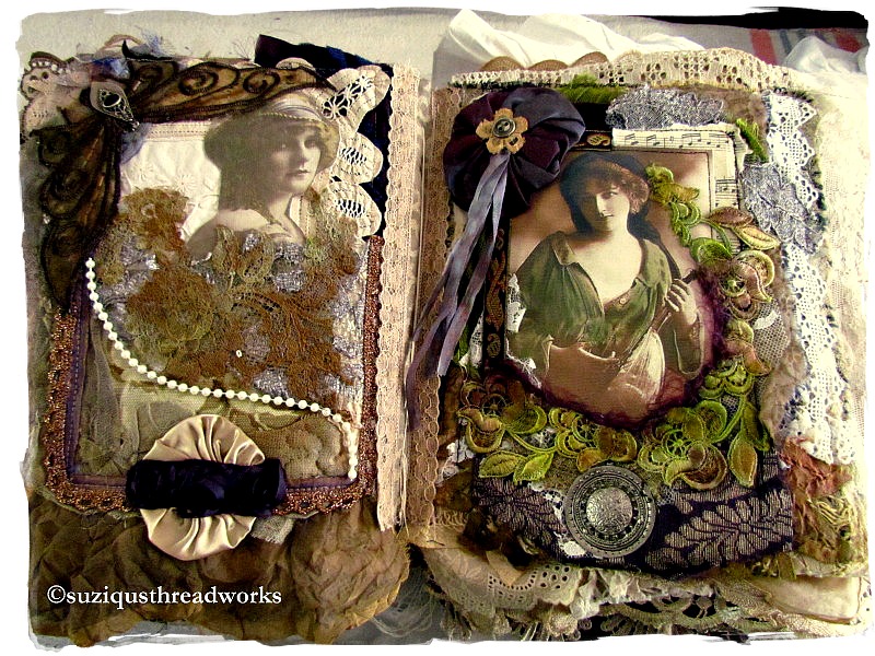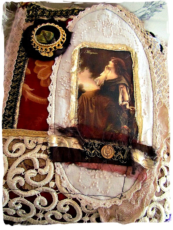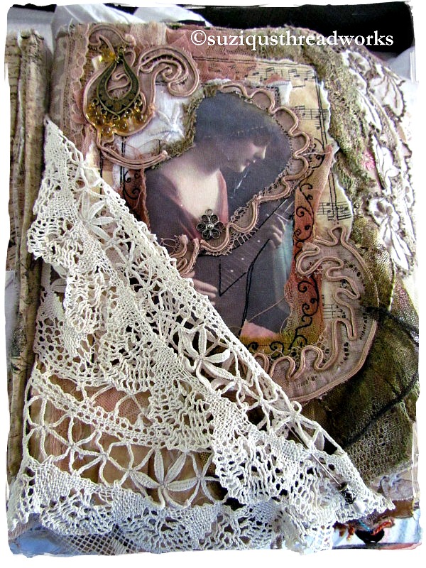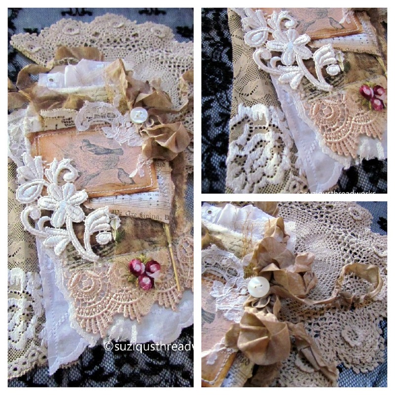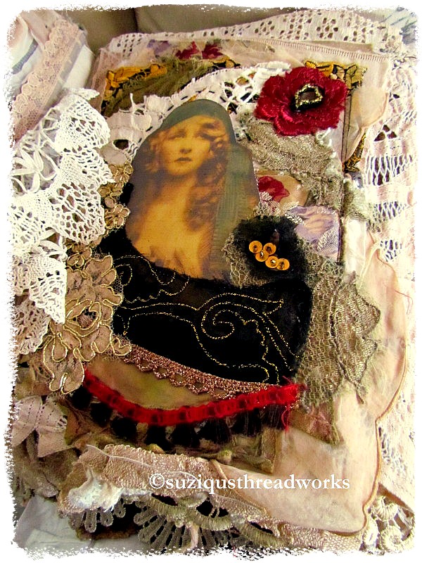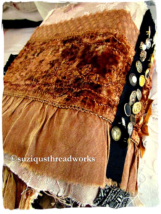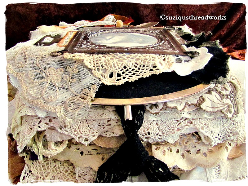 Many layers of vintage lace, (torn and tattered), chiffon, cottons